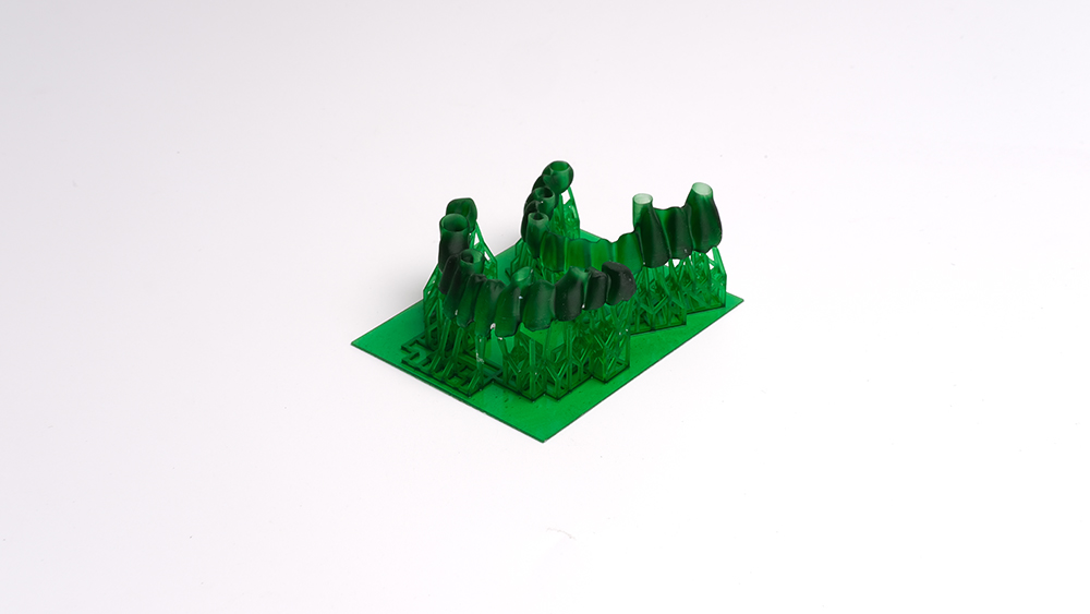 DC100 është resinë dentare derdhjeje me precizion të lartë e zhvilluar posaçërisht për prodhimin e derdhjeve dentare. Kjo resinë ka viskozitet të ulët dhe është e lehtë për tu printuar. Ka koeficient të ulët zgjerimi dhe pa mbetje gjatë pjekjes. Plotëson nevojat e procesit të derdhjeje metalike për mbështetëse të lëvizshme, si dhe procesit të derdhjeje për kurora qeramike.
