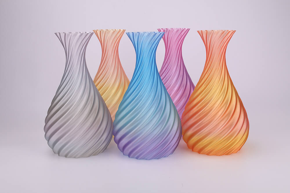 PLA-Clear Rainbow, i modifikuar në bazë të PLA, paraqet një efekt vizual shumëngjyrësh si ylber. Modeli i printuar duket sikur të jetë i ngulitur në një minierë kristali magjepsëse. Lëmuria e printimit është e mirë, sipërfaqja e modelit nuk tregon model shtresash.