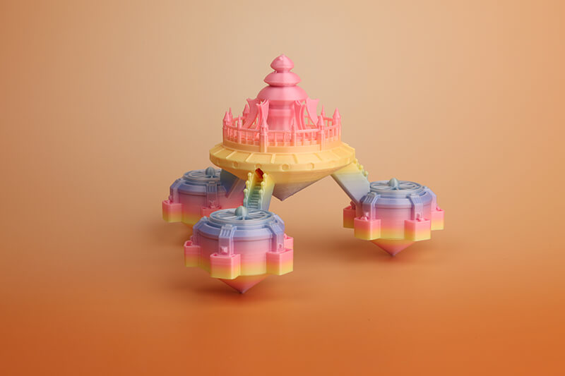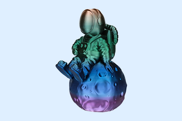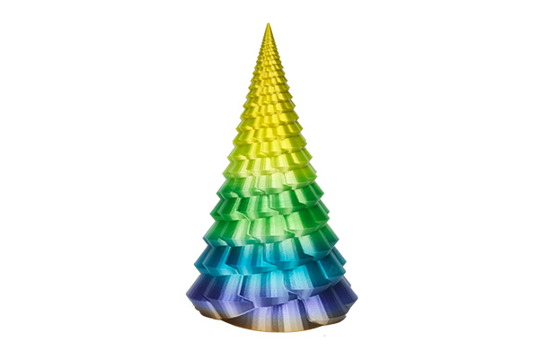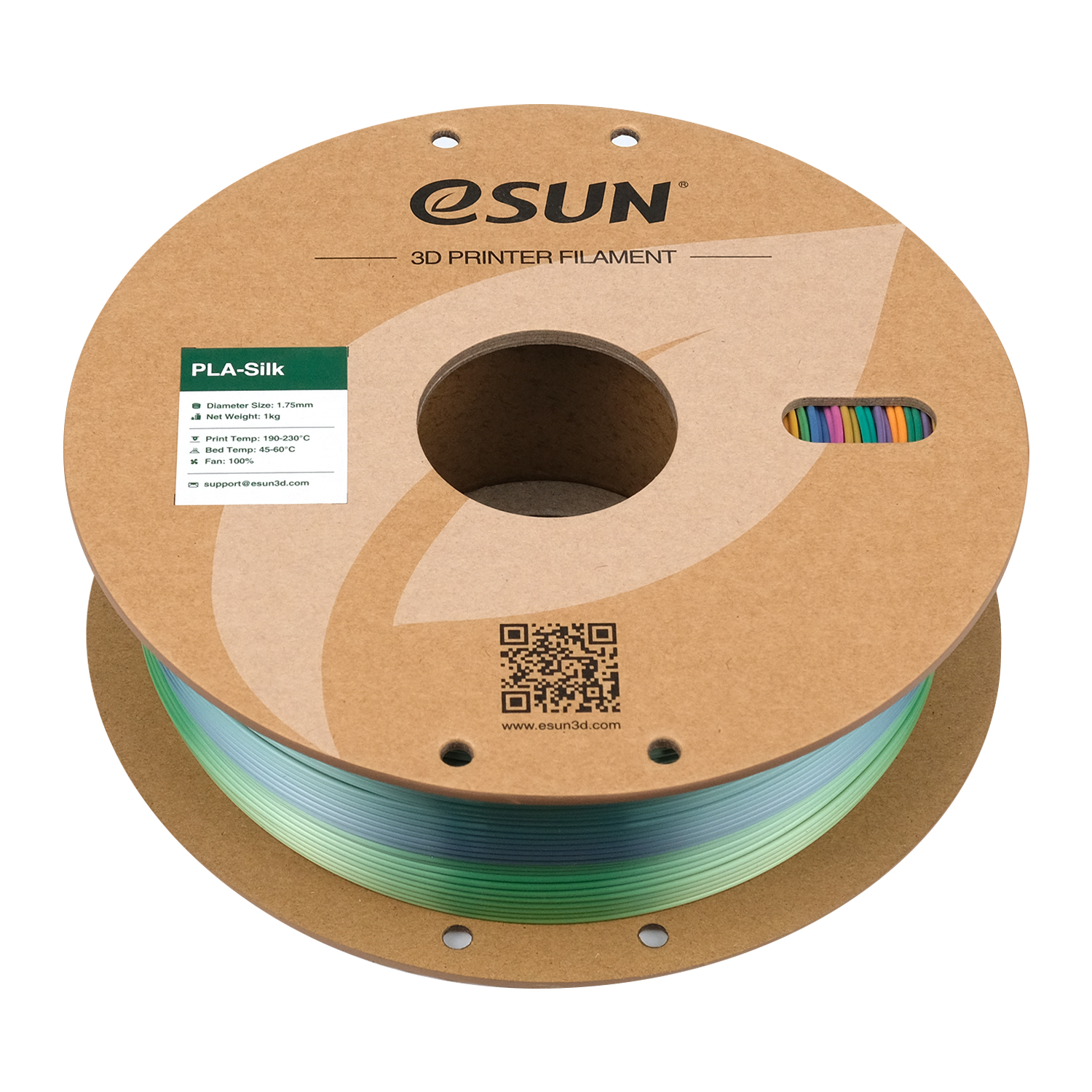 PLA-Silk Rainbow ofron një shkëlqim mëndafshi dhe teksturë të rafinuar, me spektrin e ngjyrave që i japin modeleve bukuri të gjallë dhe rrezatuese, si shiritat e mëndafshit në ylber. Sipërfaqja mbetet e lëmuar, pa shtresim, dhe mbështet heqjen e lehtë të materialit mbështetës.