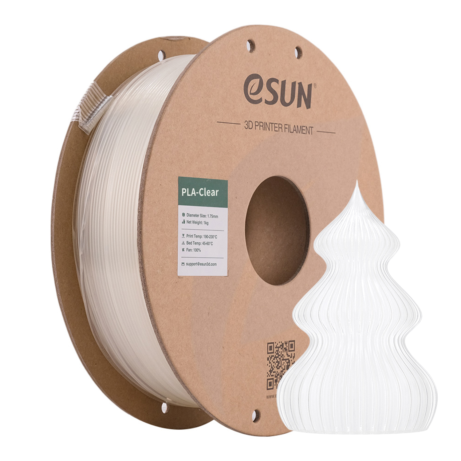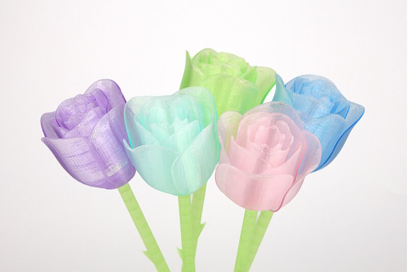 PLA Clear ka transparencë të lartë dhe produkti ka efekt gjysmë-transparent. PLA është material miqësor me mjedisin, i lehtë për printim, dhe pjesët e printuara kanë sipërfaqe të lëmuar. Nuk ka erë irrituese gjatë printimit dhe është i sigurt për përdorim.