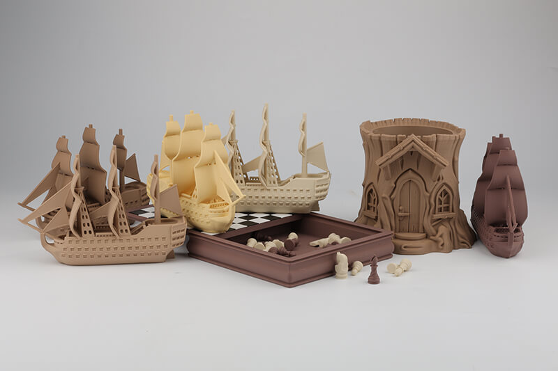Filamenti PLA-Wood përdor teknologjinë aktive të shkumëzimit për të arritur pamje si dru me PLA me densitet të ulët 0.7g/cm³. Filamenti eSUN PLA-Wood është bërë me materiale origjinale, i biodegradushëm dhe miqësor me mjedisin, jo-toksik dhe me erë të ulët.